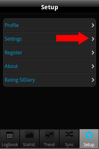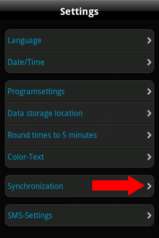 In the Android-App please click at 'Setup >>Settings >>Synchronization'