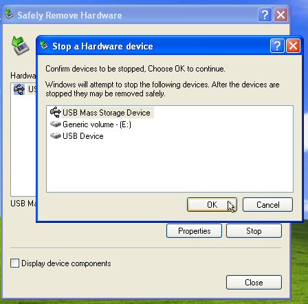 Terminate the program. Doubleclick with your left mousebutton the symbol 'Safely remove hardware' in your systray: