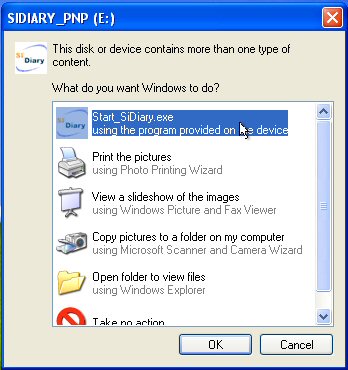 SiDiary Plug&Play, that means SiDiary on the USB-Stick is our featured model. The program is preinstalled and already registered on it. You can use it on any PC with Windows2000/XP/Vista/Windows 7 without the need to install something.