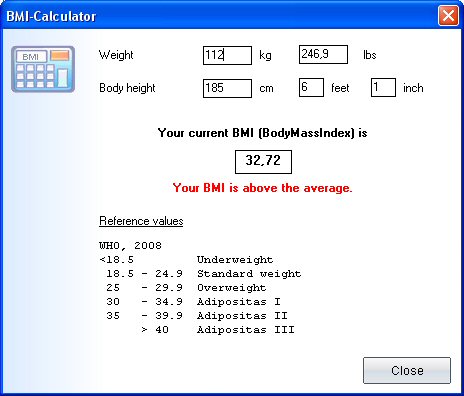 With the BMI-Calculator you can calculate your BMI (= Body-Mass-Index):