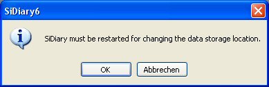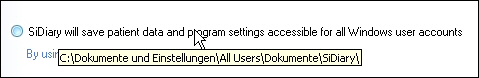 you can define where SiDiary stores your data. After clicking on Data storage location you will see this