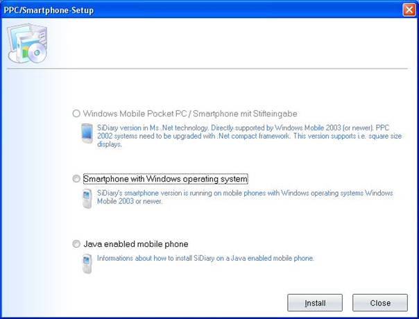 device you can install SiDiary without using your home PC. Visit our website www.sidiary.org. You get automatically on our