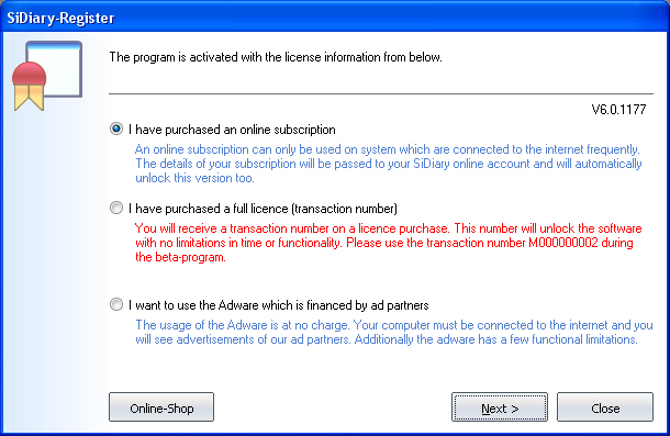 4 Registration of the full version