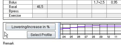 With the button Lowering/Increase in % you can make an entry of a temporary basal