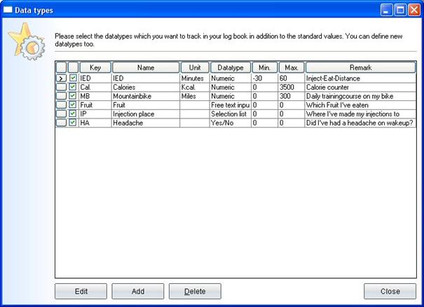your own additional categories that you want to track in SiDiary. You have the