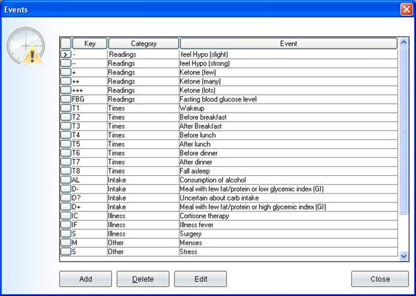 enter an abbreviation for your new event in the field Key. In the detail-logbook you can select your events right to the