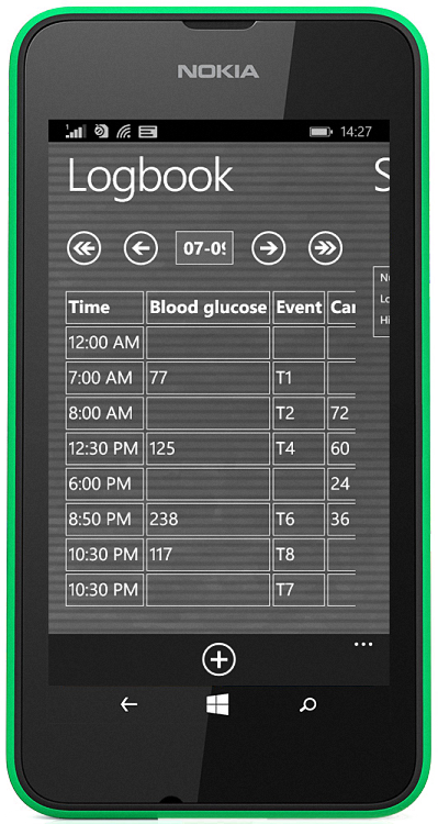 A short manual for the diabetes app can be found here: SiDiary Windows Phone Diabetes App manual