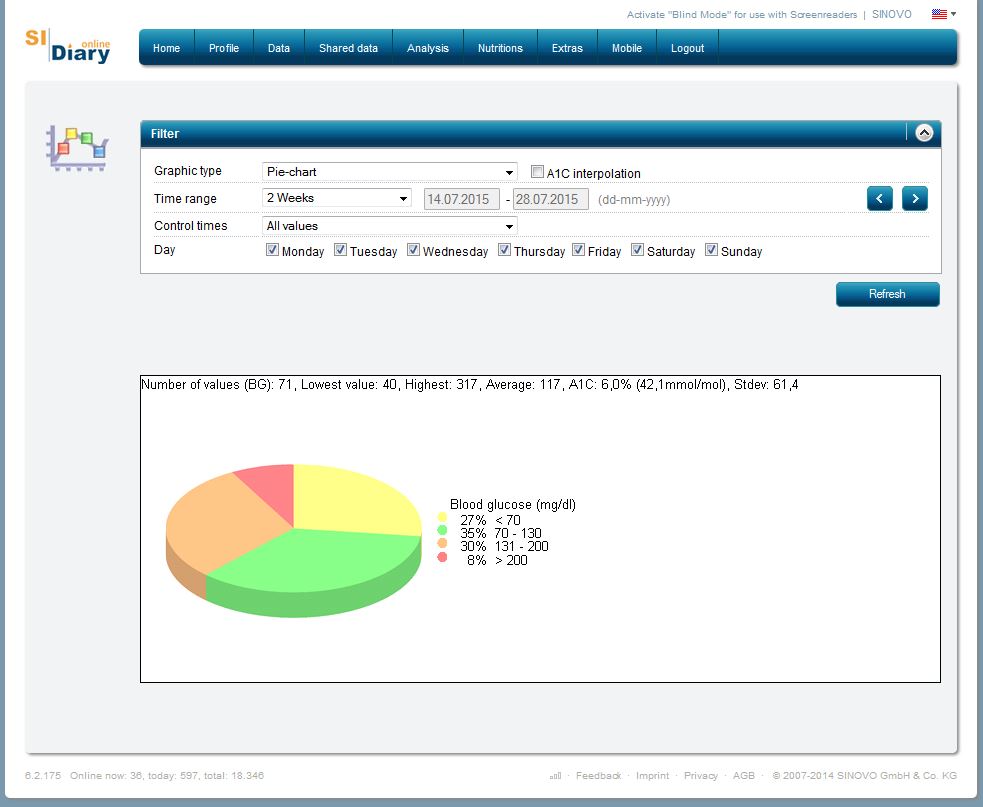 SiDiary Online Piechart SiDiary Online Trendanalysis SiDiary Online enter single data mask